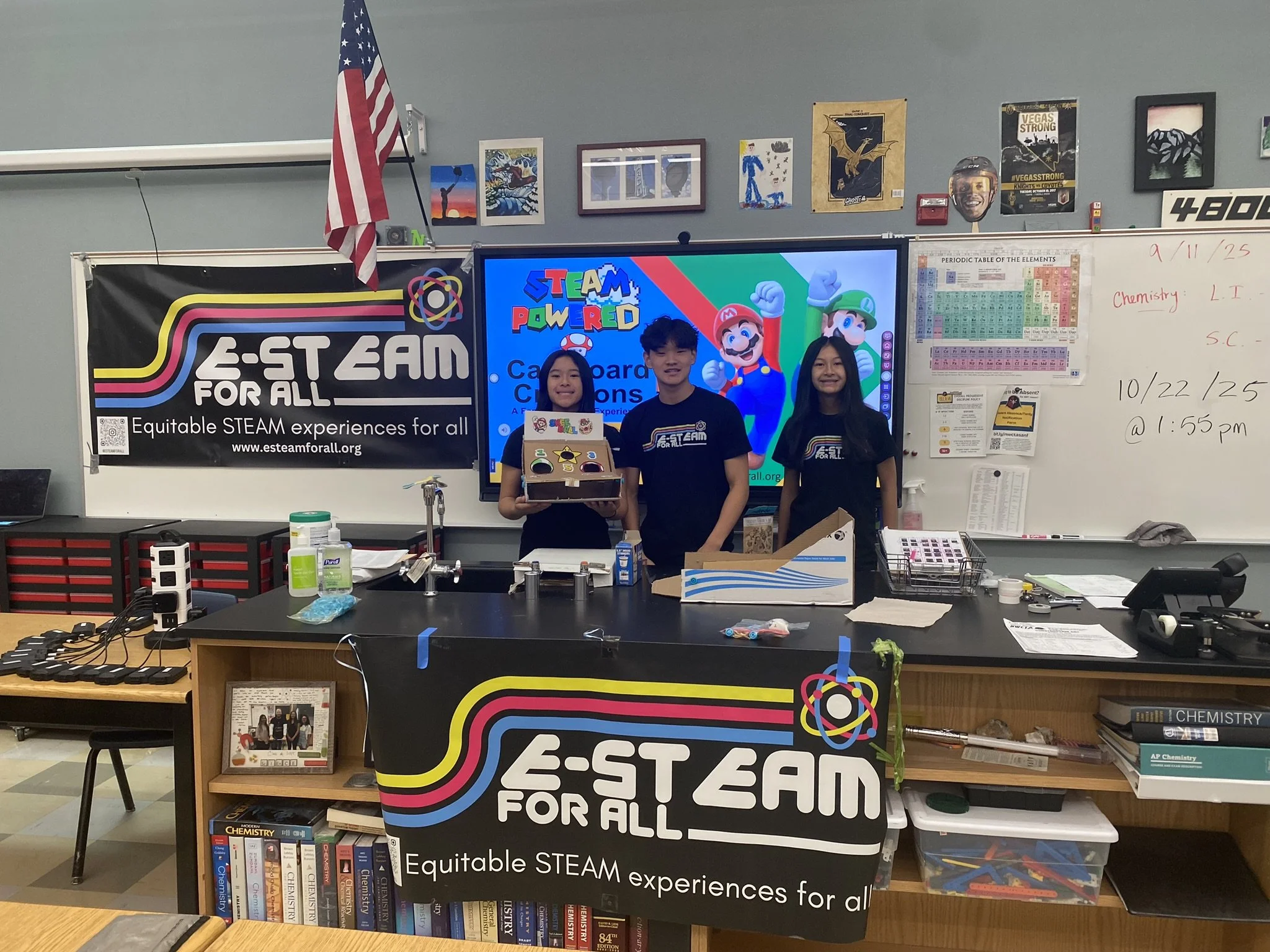 E-STEAM-for-All Non-Profit: (Science Technology Engineering Art Math): Our family’s non-profit dedicated to bringing STEAM to all young students, regardless of background and means. To date, we have had over 10 events and introduced over 500 students and families to hands on STEAM through projects like bottle rockets, strawberry DNA extraction, building electric cars to cardboard creations of arcade games like skee ball! For more information please visit E-STEAM-for-All Non-Profit